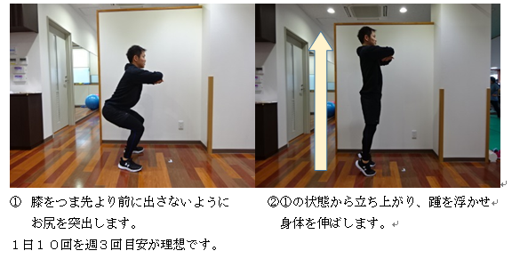 今回は下半身を自宅で鍛える事ができるトレーニングをご紹介します。(画像参照)